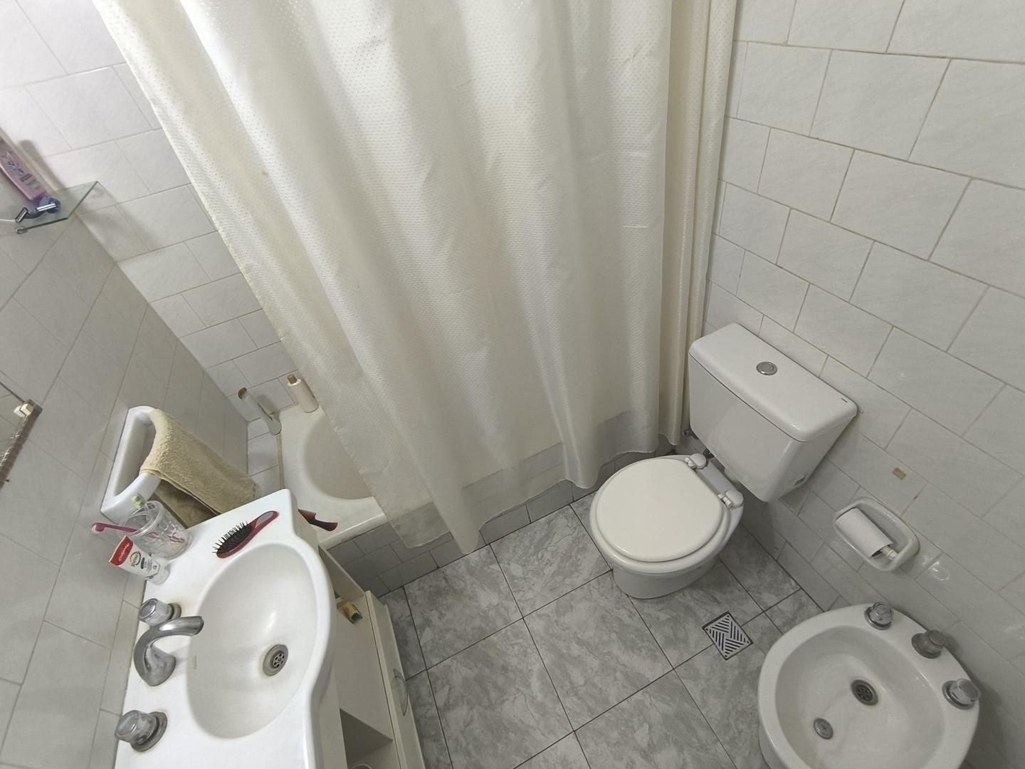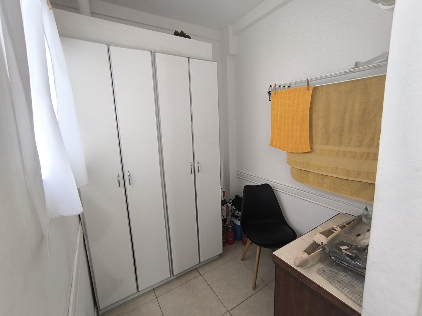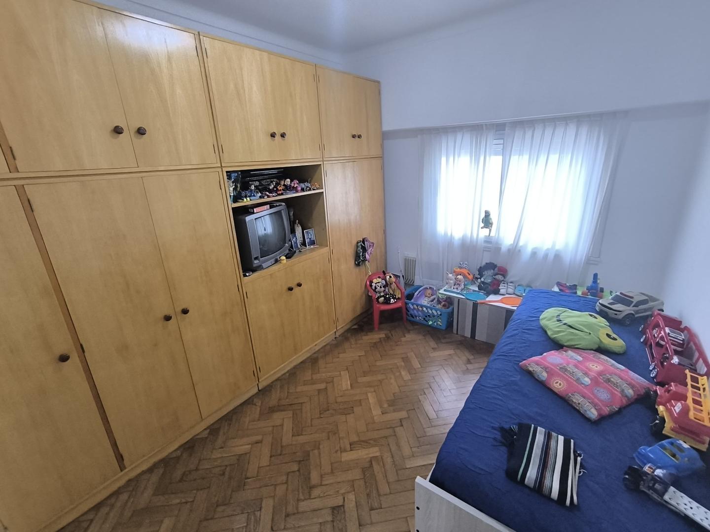 Dispone de dos habitaciones con pisos de parqué y placares empotrados, la principal es de generosas dimensiones, al frente y con calefactor.