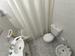 Baño completo con bañera, extractor y espacio de guardado.